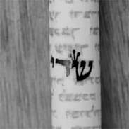 side of the mezuzah scroll is the Hebrew name of HaShem, Shaddai -