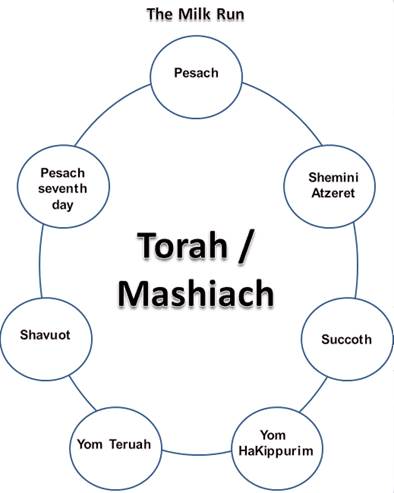 Each of the seven communities were in a trade route which we shall call a milk run. In the same way, we encounter each of the seven festivals as we trace a path through the year. The following chart illustrates this concept: