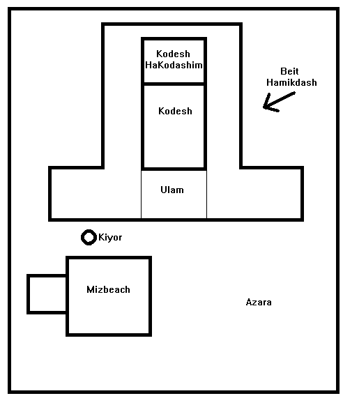 The opening of the Kodesh (the Holy place), which led to the Azara (Courtyard), was at the bottom of the room. It represented the mouth of man. Here the kohanim (Priests) stood when they uttered the priestly benediction every morning.