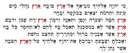 The Rabbis find another 5 occurrences nearby to make a total of twelve, and suggest, "one 'ha'aretz' for each of the 12 tribes: the land of this one, was not like the land of that one; the fruit of this one was not the fruit of that one; the hills of this one were not the hills of that one." Each tribe had their own 'ha'aretz.'