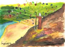 Midrashic and Zoharic sources tell us that the staff of Moses was carved from the tree of knowledge (ets ha-da’at) in the Garden of Eden; that this was the same staff that Jacob carried over the Jordan; and that this staff will ultimately be placed in the hand of the messianic king of the future.[29] The staff accordingly emerges as a symbol of continuity, marking every stage of humanity’s historic journey. R. Shmuel adds that this staff also bridges the poles of cosmic reality: It symbolizes the middle path that spans the entire hierarchy of existence, from keter, through da’at and Tiferet, and all the way down to malchut. In spanning the cosmos and collapsing its hierarchical facade, the staff of Moses acquires the miraculous power to reveal divinity in the place of concealment.